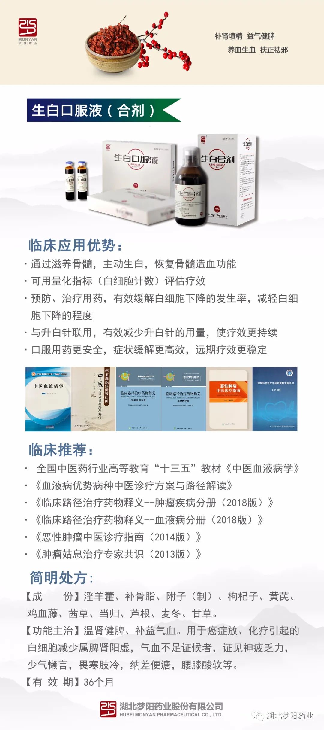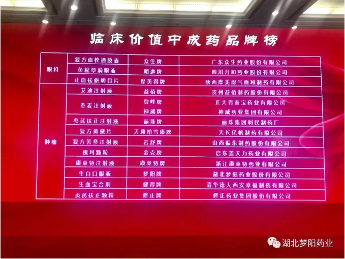 12月19日,由中國中藥協會主辦的中國中藥產業高質量發展論壇暨第二屆中國中藥品牌建設大會在北京舉行。會上發布了2020"臨床價值中成藥品牌榜"。夢陽藥業拳頭產品生白口服液,憑借高級別的循證證據、出眾的藥物臨床價值、市場價值、科技價值、質量保障力和品牌影響力,從參評的眾多中藥品種中脫穎而出,榮登榜單。這也是繼2019年,生白口服液第二次榮登該榜單。