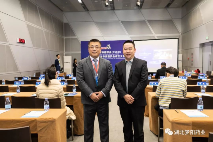 夢陽藥業董事長張敏(右)與CSCO腫瘤心臟病學專家委員會主任委員劉基巍教授(左)合影留念