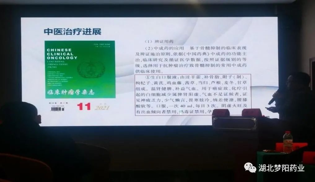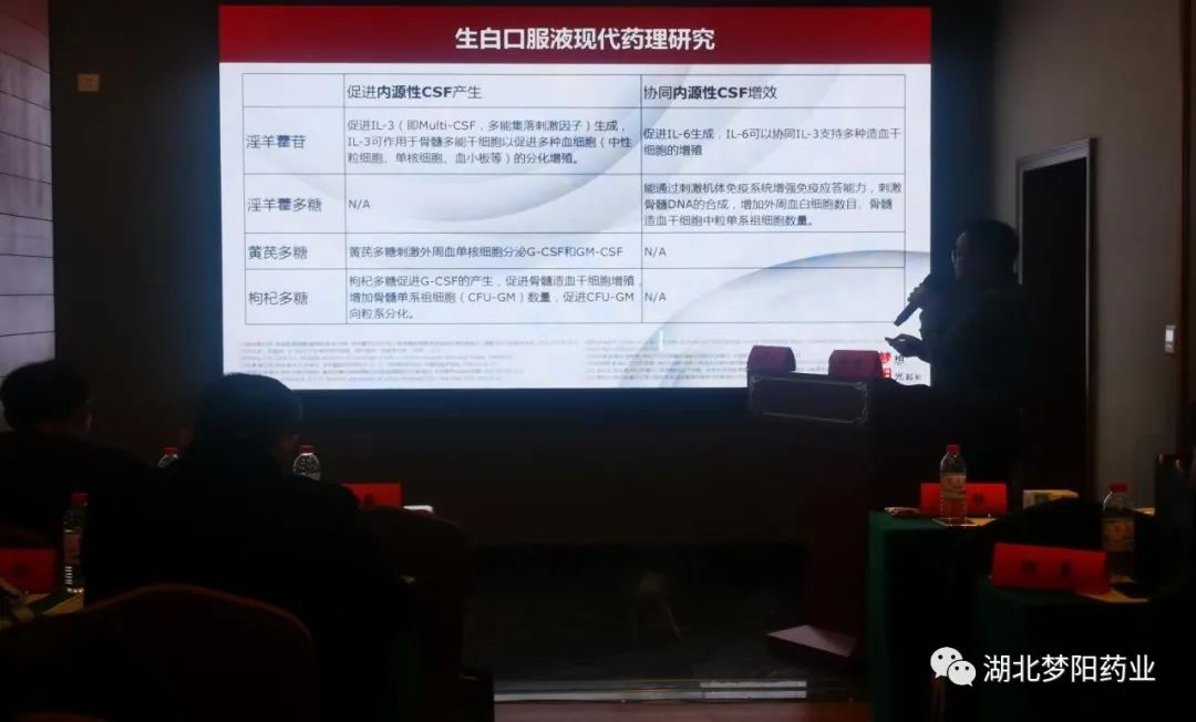 會議期間,由貴州中醫藥大學附屬第二醫院腫瘤科徐靜教授在會上分享了“生白口服液的臨床研究進展”。生白口服液(合劑)作為癌癥放、化療引起的白細胞減少癥的治療藥物,已被收錄在2020版中國藥典,是十三五創新教材《血液病學》、國家臨床路徑、診療指南、專家共識推薦治療用藥。對于預防和治療腫瘤患者放化療后骨髓抑制療效明確,對于改善患者頭暈、乏力、畏寒肢冷、腰膝酸軟等臨床癥狀也具有明確的療效。徐靜教授依據現代藥理研究成果對生白口服液(合劑)的作用機制做出了生動具體的講解,通過對臨床前研究及上市后再評價RCT研究結果的匯報,讓與會專家們深刻了解到產品的有效性及安全性。會議現場學術氛圍濃厚,討論激烈,反響熱烈。