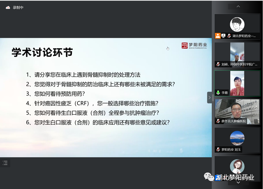 2022年8月11日,生白口服液(合劑)骨髓抑制高峰論壇 · 山西站于云端召開。與會人員是來自北京和山西區域知名的惡性腫瘤診療領域的專家,會議就中西醫結合在惡性腫瘤診療的思路、生白口服液(合劑)在臨床應用的有效性展開了豐富的研討。中國中醫科學院廣安門醫院的劉碩教授通過對臨床前研究及上市后再評價RCT研究結果的匯報,讓與會專家們深刻了解到產品的有效性及安全性。晉城市人民醫院的馬凱教授對生白口服液(合劑)在臨床應用中的有效性給予了高度的肯定,強調生白口服液(合劑)升高白細胞的同時,還從根源上改善骨髓的造血功能。北京大學腫瘤醫院薛冬教授最后對本次會議作出總結,隨著我國對中西醫結合治療惡性腫瘤的重視,中醫中藥面臨著前所未有的機遇和挑戰。在此情況之下,大家更應該共同研討出中西醫結合在惡性腫瘤診療的新思路。